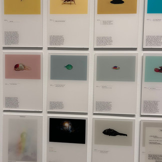 interesting art: the lobster telephone, snapshots of the miniscule, and fruit on a rock.