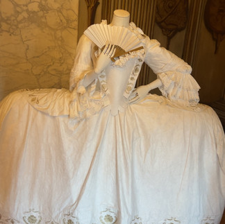 Kensington Palace: a view of the building [it was a dull day, the sky is usually pretty dull in London]; a gown that would also double as a mattress; and the Princess Diana Memorial Garden outside.